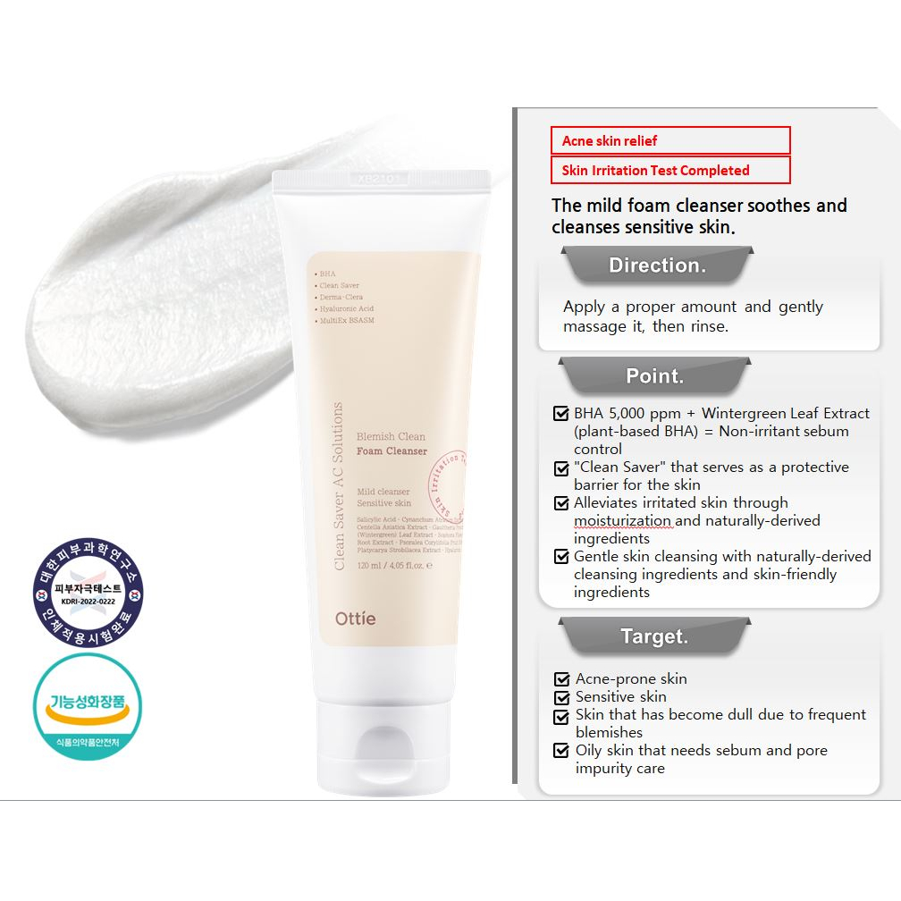 OTTIE Blemish Clean Foam Cleanser, 120 ml